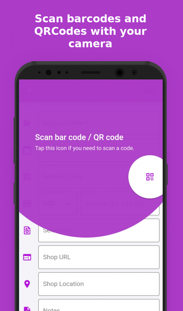 Always with you wherever and whenever you need them. 1-click access to the redeem code / bar code / QR code, the original file or the picture you took of it